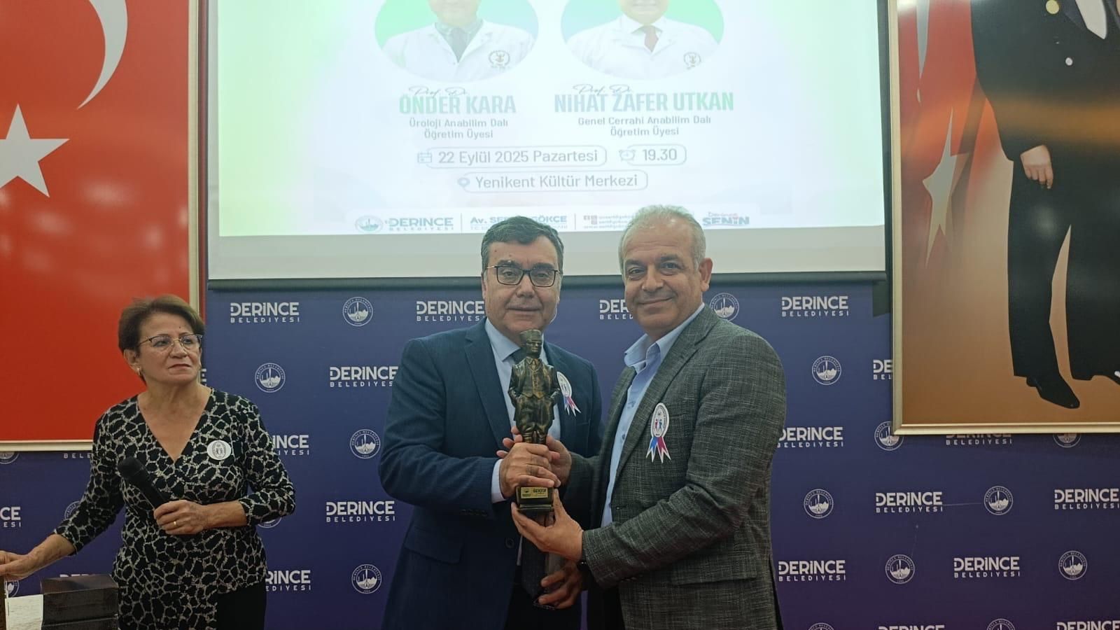 Programda konuşan Prof. Dr. Zafer Utkan, erken teşhisin hastalığın tedavisinde en önemli avantaj olduğunu belirtirken; Prof. Dr. Önder Kara da risk gruplarının düzenli olarak kontrollerini yaptırması ve bu konuda bilinçli olmasının hastalıkla mücadelede önemli bir etken olduğunu aktardı. Derince Belediye Başkan Yardımcısı Mehmet Turan, Prof. Dr. Utkan ve Prof. Dr. Kara’ya katılımları ve aktardıkları önemli bilgiler için teşekkür ederek hediye takdiminde bulundu. Turan, “Kıymetli hocalarımıza ve değerli halkımıza programa katılımlarından dolayı teşekkür ediyorum. Derince Belediyesi olarak sosyal, kültürel ve sağlık alanlarında bu tür etkinlikler düzenlemeye devam edeceğiz” dedi.