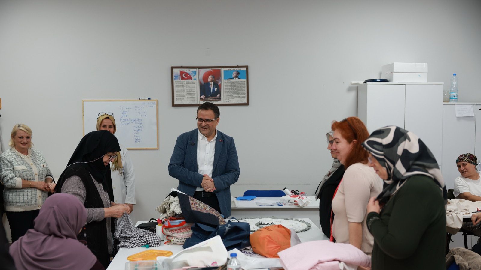 DER-MEK bünyesinde faaliyet gösteren kurs merkezlerini ziyaret eden Derince Belediye Başkanı Av. Sertif Gökçe, usta öğreticiler ve kursiyerlerle bir araya geldi