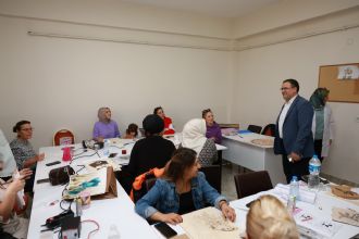 Derince Belediyesi ve İlçe Halk Eğitim Müdürlüğü iş birliği ile faaliyetlerini sürdüren Derince Belediyesi Mesleki Eğitim Kursları’nda (DER-MEK) yeni dönem çalışmaları sürüyor. Yenikent, Kusachi, Çınarlı, Fatih Sultan, Sırrıpaşa, İbni Sina ve Mersincik’te bulunan yedi ayrı merkezde ilçe halkına ücretsiz eğitim olanağı sunulurken, kurslara gösterilen ilgi artmaya devam ediyor. Bu yıl yedi ayrı merkezde açılan DER-MEK bünyesinde 42 branşta kursiyerlere hizmet veriliyor. DER-MEK ailesini yalnız bırakmayan ve her zaman yanlarında olan Derince Belediye Başkanı Av. Sertif Gökçe de kurs merkezlerini ziyaret ederek, usta öğreticiler ve kursiyerlerle bir araya geldi.