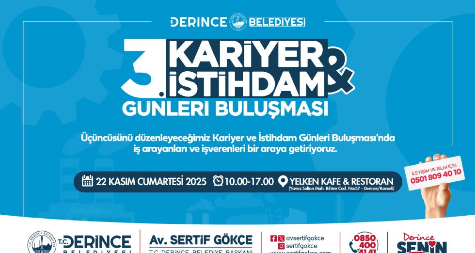 Derince Belediyesi tarafından üçüncüsü düzenlenecek olan Kariyer ve İstihdam Günleri Buluşması, 22 Kasım Cumartesi günü gerçekleşecek