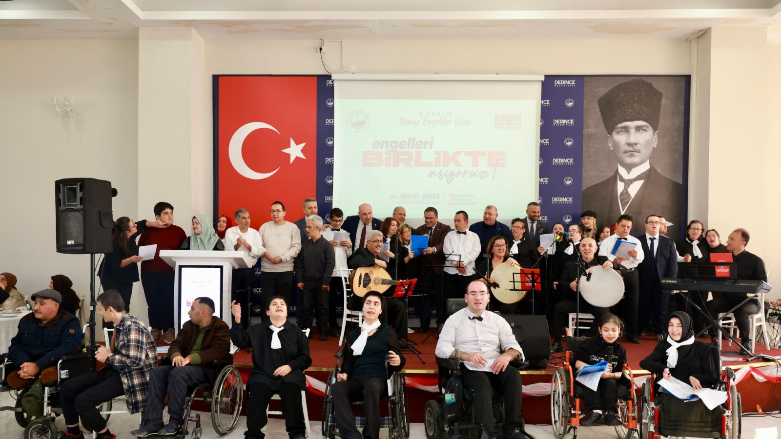 3 Aralık Dünya Engelliler Günü kapsamında Derince Belediyesi çok anlamlı bir etkinlik organize etti. Derince Belediyesi bünyesinde hizmet veren Engelsiz Yaşama Destek Merkezi’nde (EYDEM) eğitim gören kursiyerlerin katılımıyla gerçekleşen program Yenikent Kültür Merkezi’nde düzenlendi. Derince Belediye Başkanı Av. Sertif Gökçe’nin ev sahipliğinde gerçekleşen program belediye başkan yardımcıları siyasi parti başkan ve yöneticileri, meclis üyeleri, muhtarlar, STK yöneticileri, kaymakamlık ve belediye daire müdürleri ve EYDEM ailesi yoğun ilgi gösterdi.