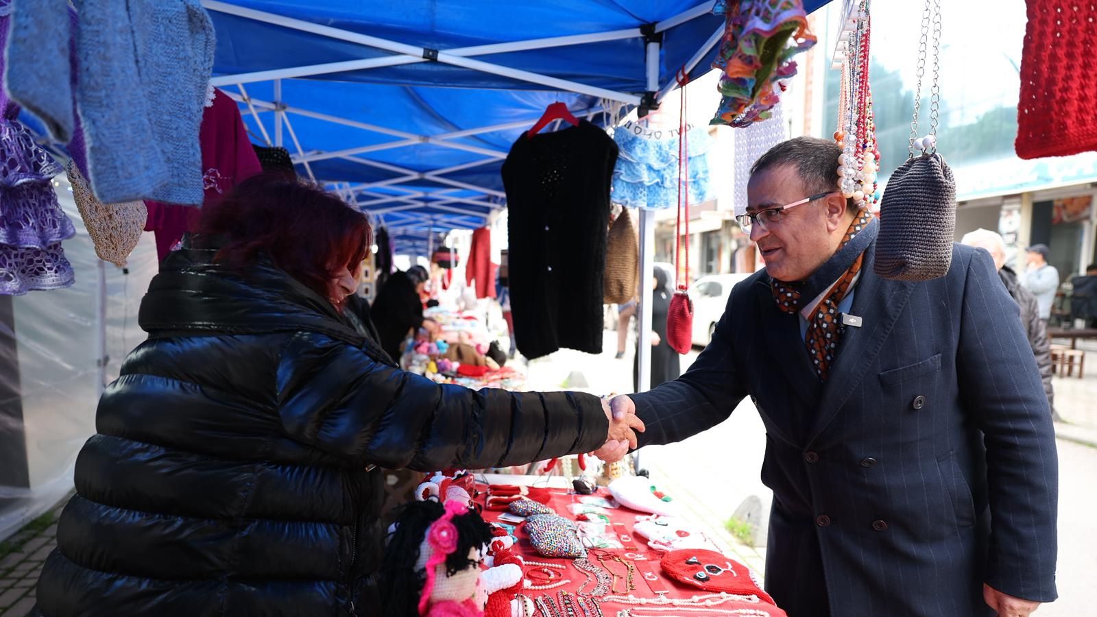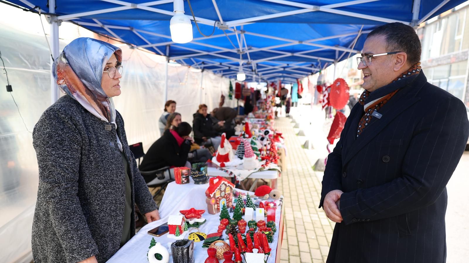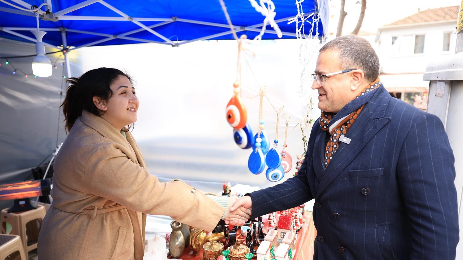 Derince Belediyesi Kadın El Emeği Ürünleri Satış Stantları yeni yıl öncesi sevdiklerine hediye almak ve alışveriş yapmak isteyen ilçe sakinleri için birbirinden güzel fırsatlar sunuyor