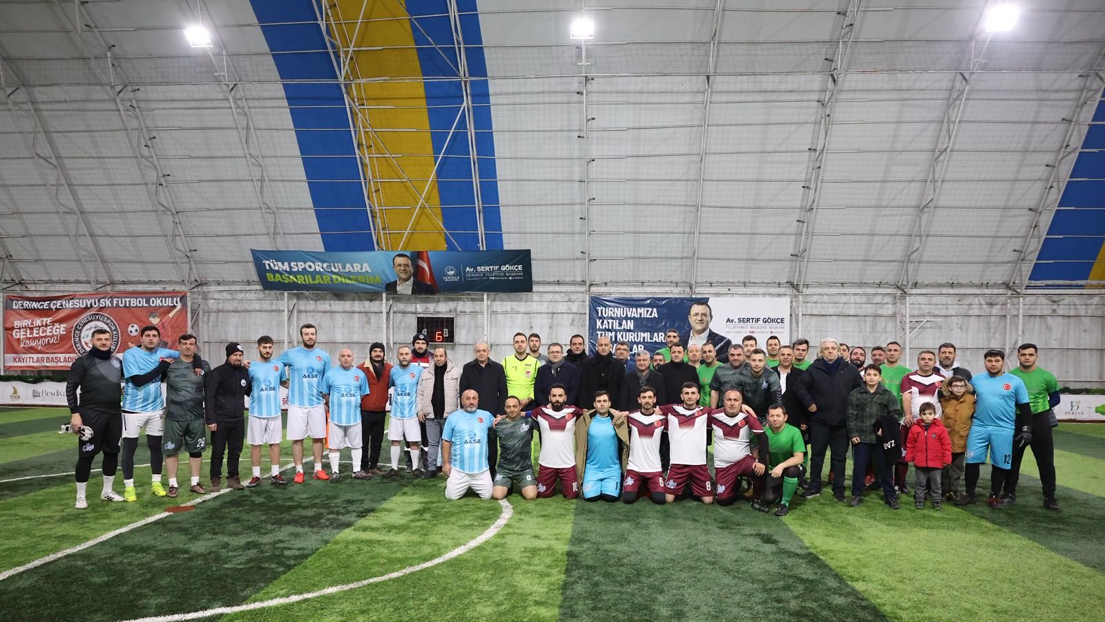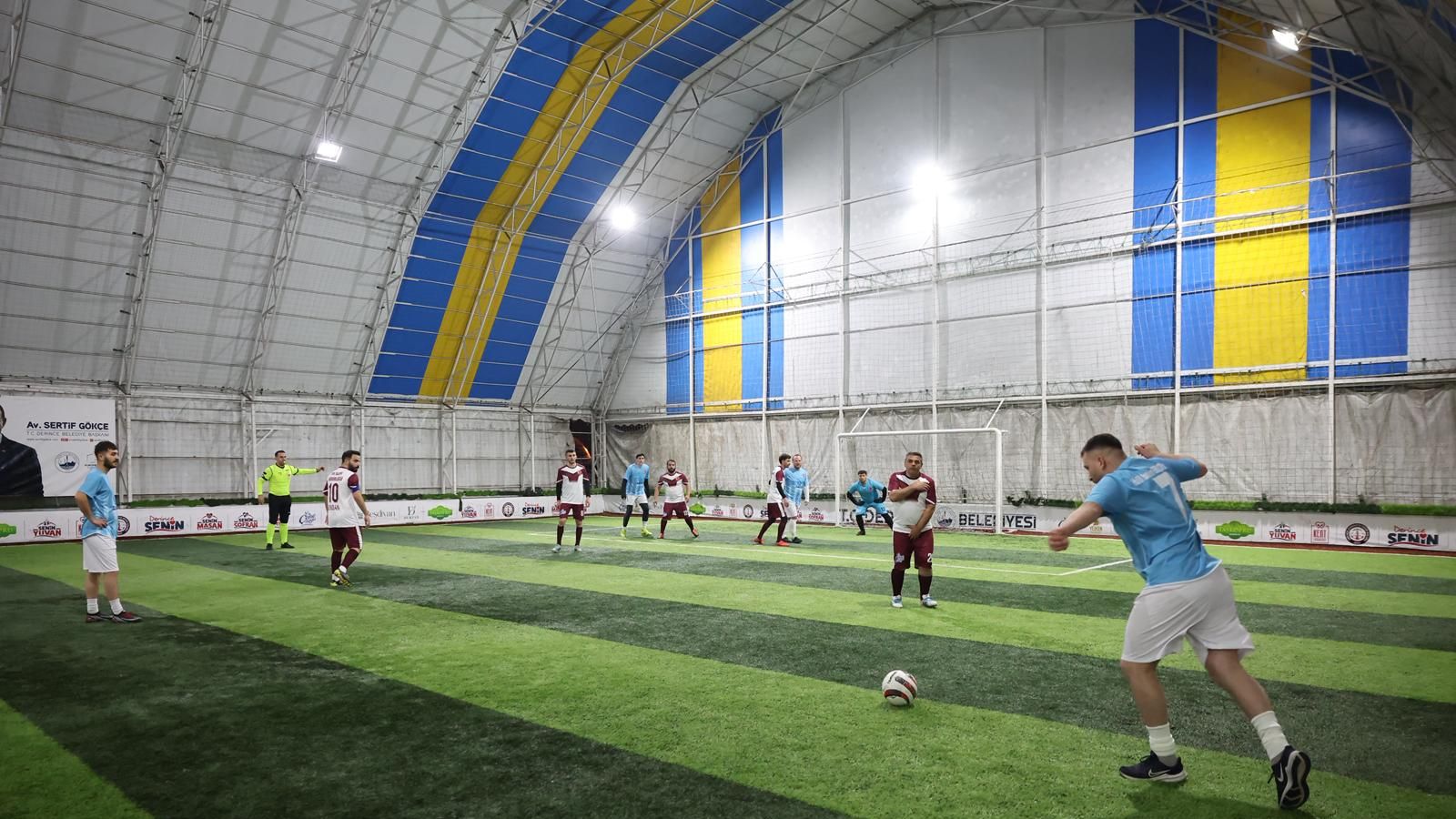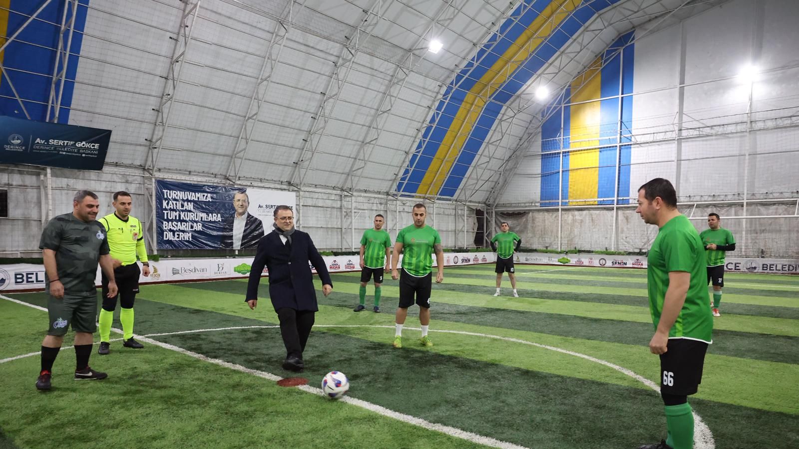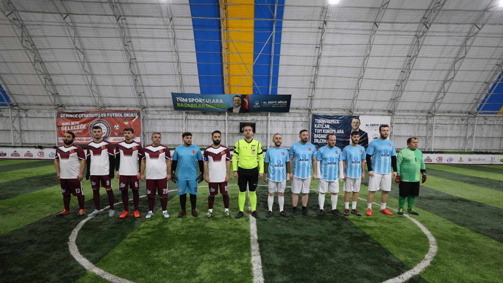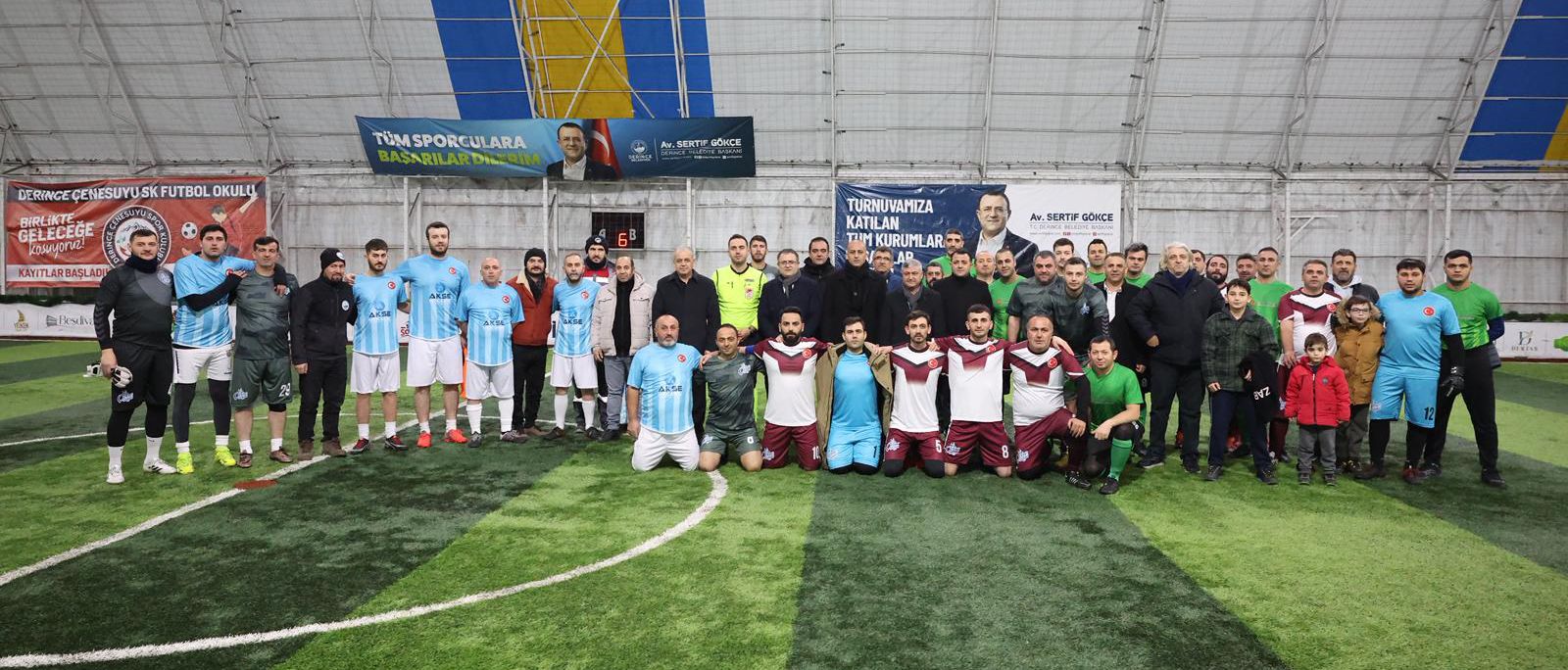 Derince Belediyesi’nin birimler arasındaki iletişim ve dayanışmayı artırmak amacıyla düzenlediği futbol turnuvasında heyecan başladı. Toplam 10 takımın iki ayrı grupta dostluk mücadelesine sahne olacak turnuva Derince Belediye Başkanı Av. Sertif Gökçe’nin başlama vuruşu ile start aldı. Yenikent Halı Saha Tesisleri’nde gerçekleşen açılış törenine belediye başkan yardımcıları, meclis üyeleri, muhtarlar, belediye daire müdürleri, sporcular ve spor severler katılım sağladı. Gruplarında ilk iki sırayı alan takımların yarı finale yükseleceği turnuvanın açılış müsabakasında Sosyal Destek Hizmetleri Müdürlüğü ile Fen işleri Müdürlüğü takımları karşı karşıya geldi.