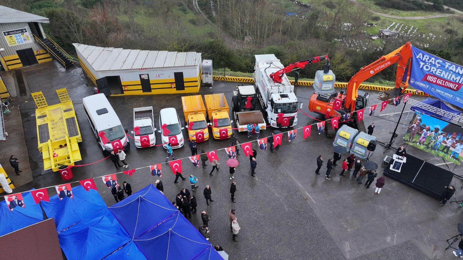 Derince Belediye Başkanı Av. Sertif Gökçe, halka yönelik hizmet kalitesini ve çalışma gücünü üst seviyelere taşımak hedefiyle belediye bünyesine 22 ayda kazandırdığı 22 hizmet aracının tanıtımını düzenlenen törenle gerçekleştirdi. Saygı duruşu ve ardından İstiklal Marşı’nın okunması ile başlayan programa ilgi oldukça büyüktü. Yenikent Mahallesi’nde yer alan Temizlik İşleri Müdürlüğü Garajı’nda yapılan araç tanıtım programına CHP Yerel Yönetimlerden Sorumlu Genel Başkan Yardımcısı Gökan Zeybek, CHP Kocaeli Milletvekilleri Harun Özgür Yıldızlı, Mühip Kanko ve Nail Çiler, CHP İstanbul Milletvekili Doğan Demir, CHP Kocaeli İl Başkanı Erdem Arcan, CHP Parti Meclis Üyeleri Ecevit Keleş ve Uğurcan İrak, CHP Genel Sekreter Yardımcısı Süleyman Tarık Balyalı, İzmit Belediye Başkanı Fatma Kaplan Hürriyet, Karamürsel Belediye Başkanı Ahmet Çalık, TBMM önceki dönem Başkanvekili Haydar Akar, CHP Kocaeli eski Milletvekili Hikmet Erenkaya, CHP Kocaeli eski İl Başkanı Bülent Sarı, il ve ilçe yöneticileri, siyasi partilerin ilçe başkanları ve yöneticileri, sivil toplum kuruluşlarının başkanları ve yöneticileri, mahalle muhtarları, belediye meclis üyeleri ve daire müdürleri ile ilçe halkı yoğun katılım sağladı.