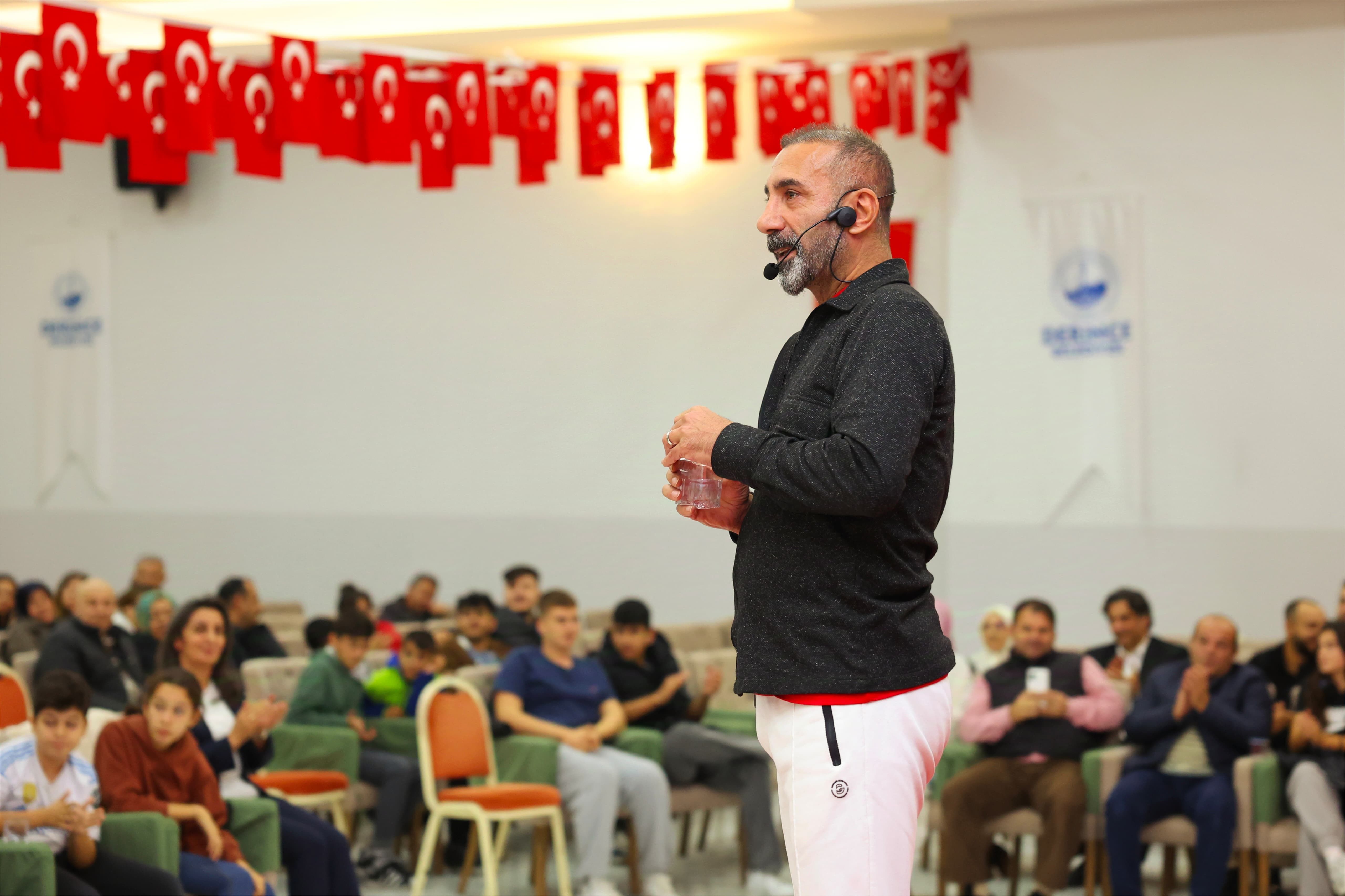 Derince Belediyesi’nin öncülüğünde düzenlenen etkinlikte Metin Yıldız, kendine özgü üslubu ve esprili anlatımıyla büyük beğeni topladı. Ünlü tiyatro ve sinema sanatçısı Metin Yıldız’ın ‘Metin Yıldız Şakaları’ başlığıyla sahneye sunduğu stand up gösterisi katılımcılara keyifli anlar yaşattı. Derince Belediye Başkan Yardımcıları programın sonunda katılımları dolayısıyla Metin Yıldız’a teşekkür ederek çiçek ve hediye takdiminde bulundu. 29 Ekim Cumhuriyet Bayramı etkinliklerinin milli değerlerin yaşatılması için çok önemli olduğunu belirten Başkan Yardımcısı Mehmet Turan, yaptığı teşekkür konuşmasında tüm katılımcıların Cumhuriyet Bayramı’nı tebrik etti.