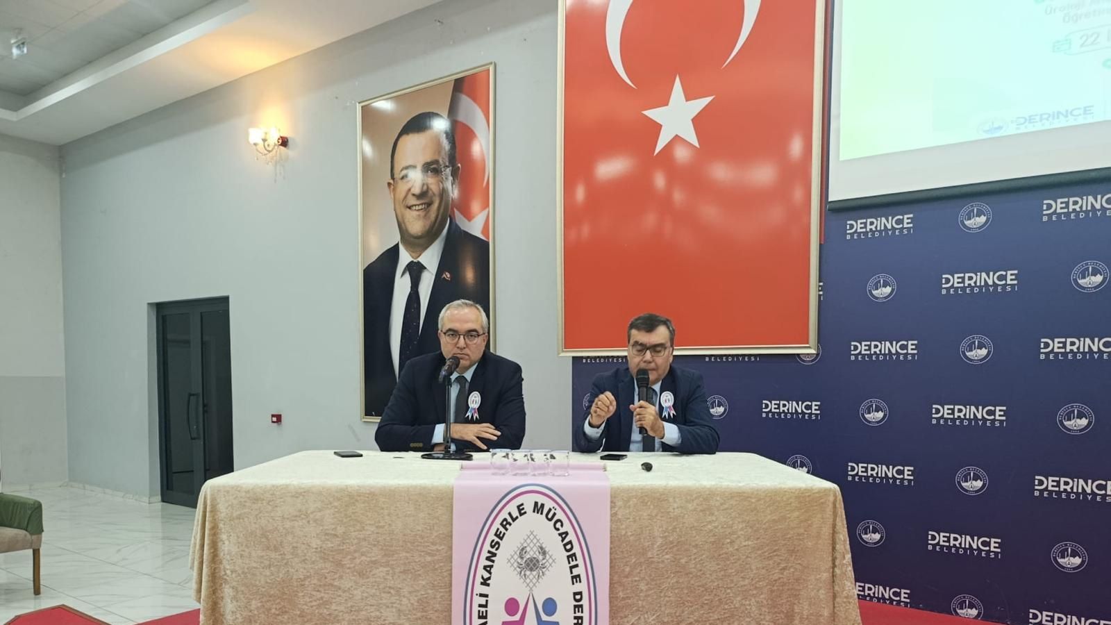 Programda konuşan Prof. Dr. Zafer Utkan, erken teşhisin hastalığın tedavisinde en önemli avantaj olduğunu belirtirken; Prof. Dr. Önder Kara da risk gruplarının düzenli olarak kontrollerini yaptırması ve bu konuda bilinçli olmasının hastalıkla mücadelede önemli bir etken olduğunu aktardı. Derince Belediye Başkan Yardımcısı Mehmet Turan, Prof. Dr. Utkan ve Prof. Dr. Kara’ya katılımları ve aktardıkları önemli bilgiler için teşekkür ederek hediye takdiminde bulundu. Turan, “Kıymetli hocalarımıza ve değerli halkımıza programa katılımlarından dolayı teşekkür ediyorum. Derince Belediyesi olarak sosyal, kültürel ve sağlık alanlarında bu tür etkinlikler düzenlemeye devam edeceğiz” dedi.
