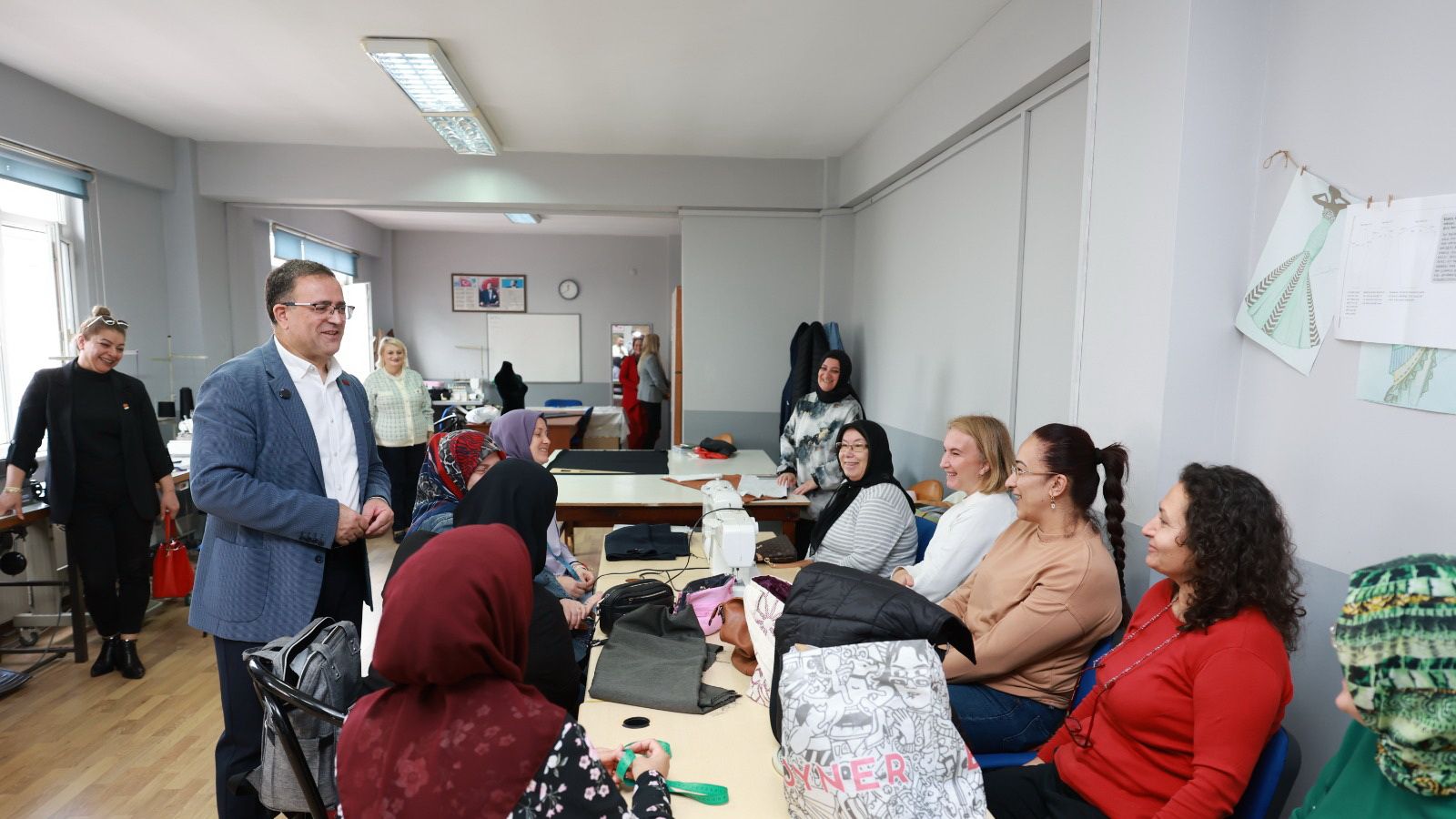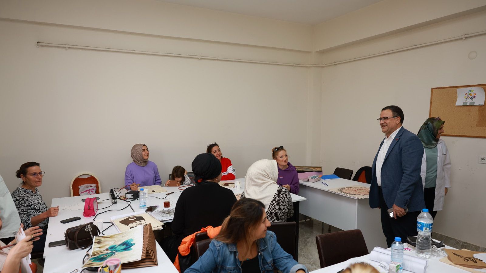DER-MEK bünyesinde faaliyet gösteren kurs merkezlerini ziyaret eden Derince Belediye Başkanı Av. Sertif Gökçe, usta öğreticiler ve kursiyerlerle bir araya geldi