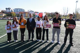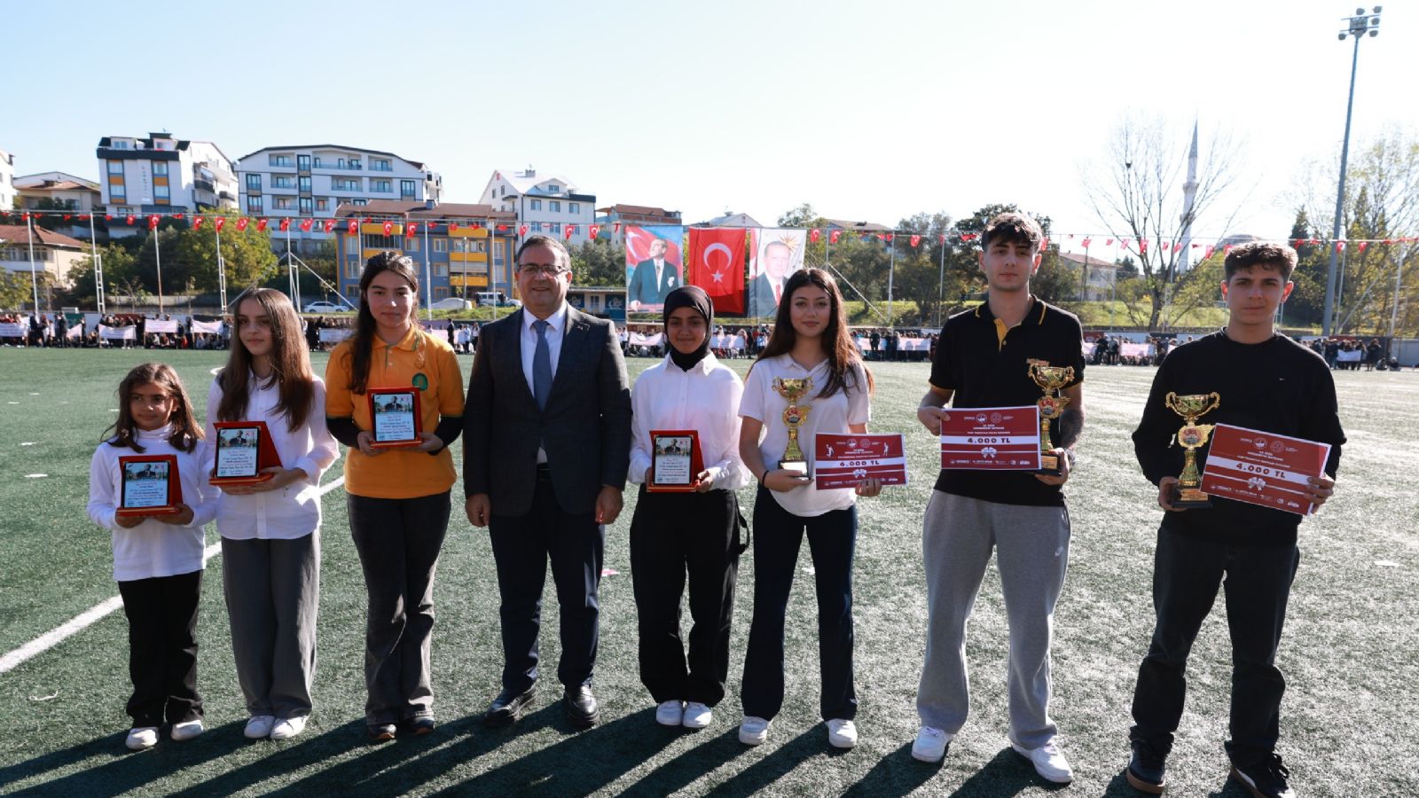 Derince Belediye Stadı’nda düzenlenen 29 Ekim Cumhuriyet Bayramı kutlama programı saygı duruşu ve İstiklal Marşı’nın okunmasıyla başladı. Günün anlam ve önemini belirten konuşmaların yapılmasıyla devam eden program öğrencilerin seslendirdiği şiirler, gösteriler ve halk oyunları etkinlikleri ile renklendi. Program kapsamında 29 Ekim Cumhuriyet Bayramı kapsamında düzenlenen yarışmalarda dereceye giren öğrencilere protokol tarafından ödülleri de takdim edildi. Protokol ve ilçe halkının yoğun katılımı ile gerçekleşen 29 Ekim Cumhuriyet Bayramı kutlamaları tören geçişi ile tamamlandı.