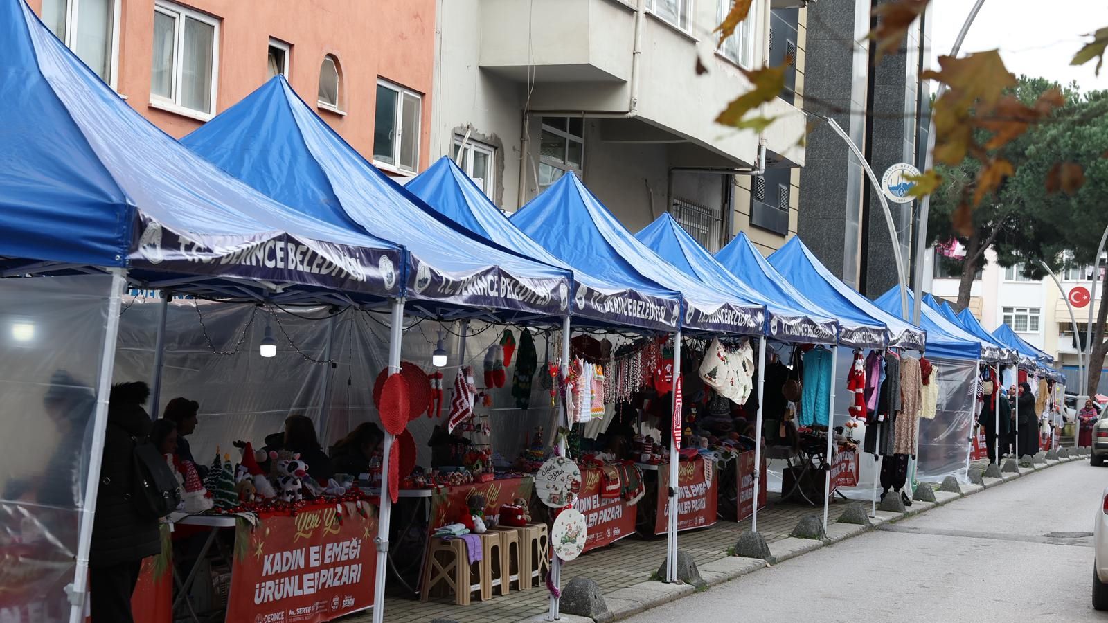 Derince Belediyesi Kadın El Emeği Ürünleri Satış Stantları yeni yıl öncesi sevdiklerine hediye almak ve alışveriş yapmak isteyen ilçe sakinleri için birbirinden güzel fırsatlar sunuyor